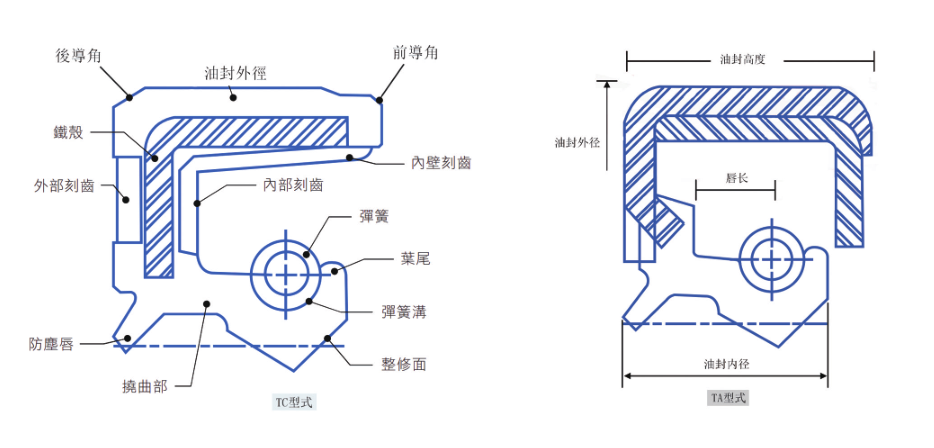1、TC/SC型骨架油封:骨架油封中常用的類型,一般說的骨架油封就是指的TC油封